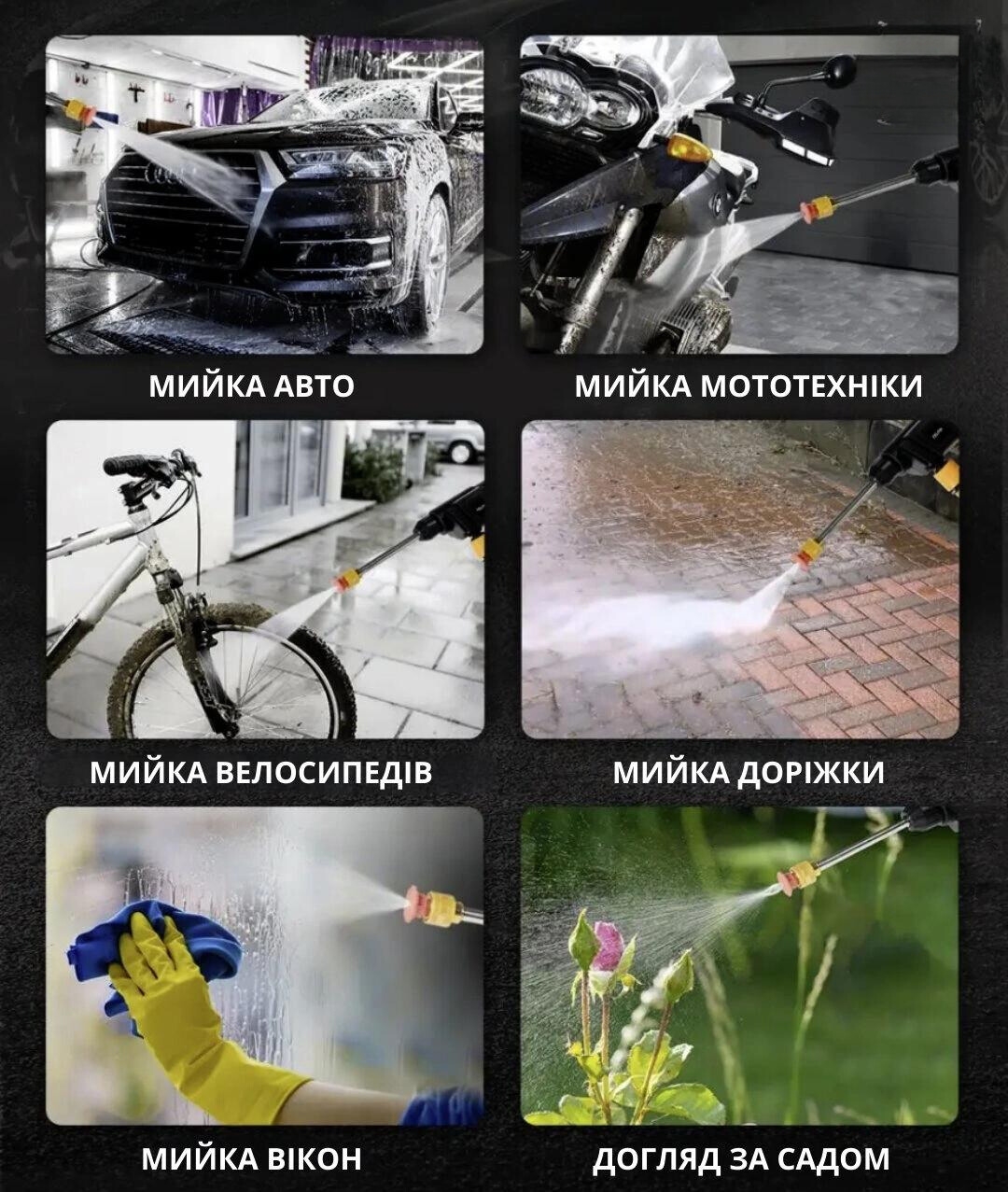 Цей інструмент здатний також полити цілий сад та якісно помити вікна Вашого будинку.